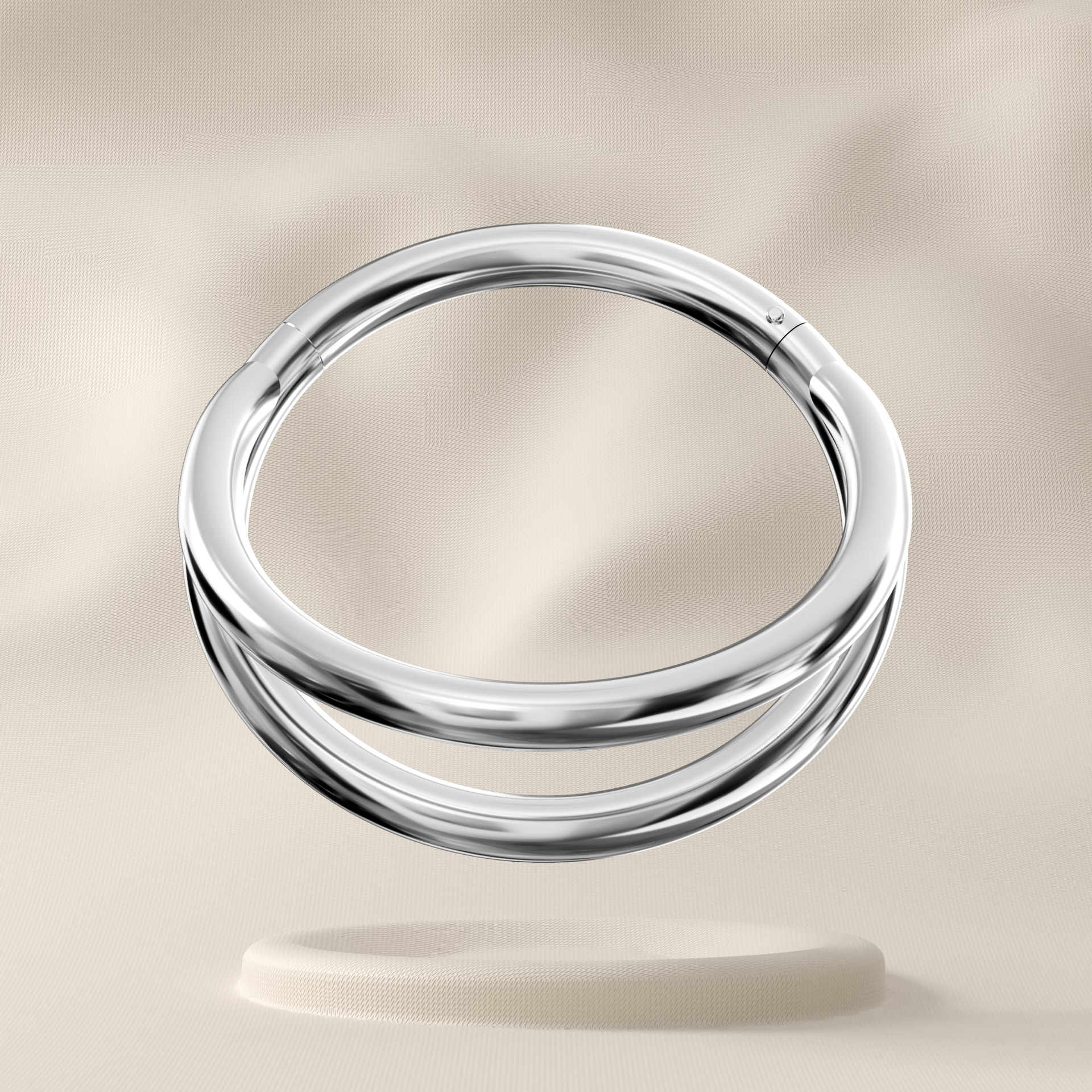 Sleek and stylish, this double row segment ring is crafted from genuine 925 sterling silver, offering a bold yet refined look. The clicker closure ensures easy, secure wear—ideal for daily use or statement styling.