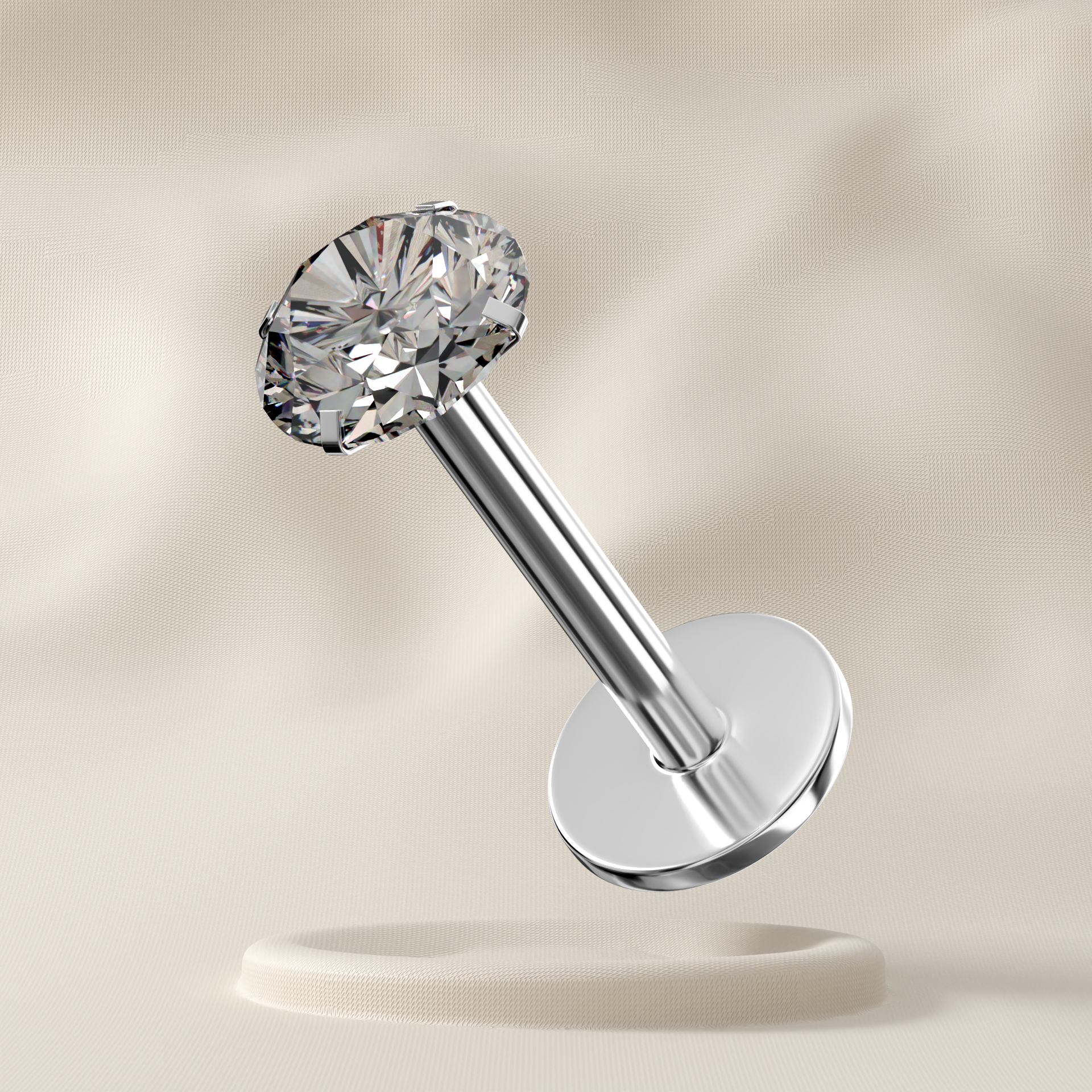 This 925 sterling silver round CZ jewelled internally threaded top with Round Base Labret offers a secure and stylish fit with a heart flat-back design. Compatible with the 16G flat-back labret, this piece combines durability with elegance for a sophisticated look.