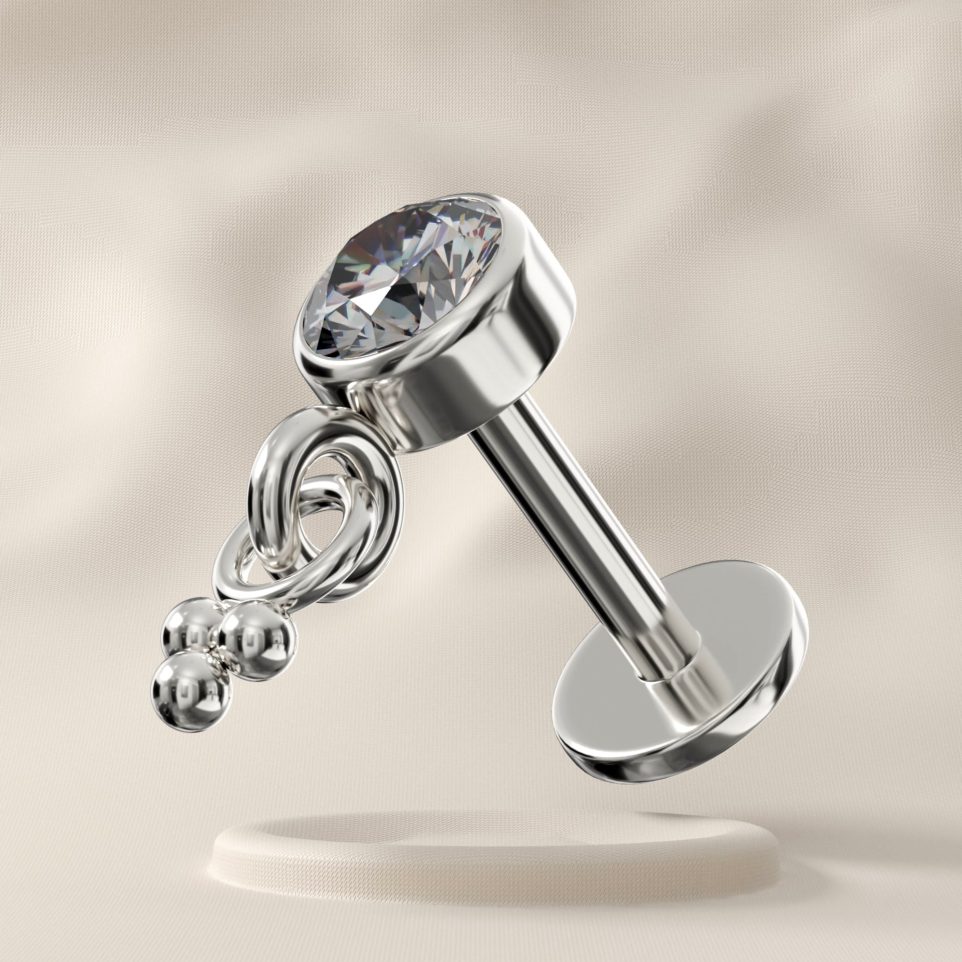 Add elegant sparkle and movement to your piercing with this dangling Cubic Zirconia stud, crafted from implant-grade G23 titanium for superior comfort and durability. The threadless push-fit design offers a secure, hassle-free fit.