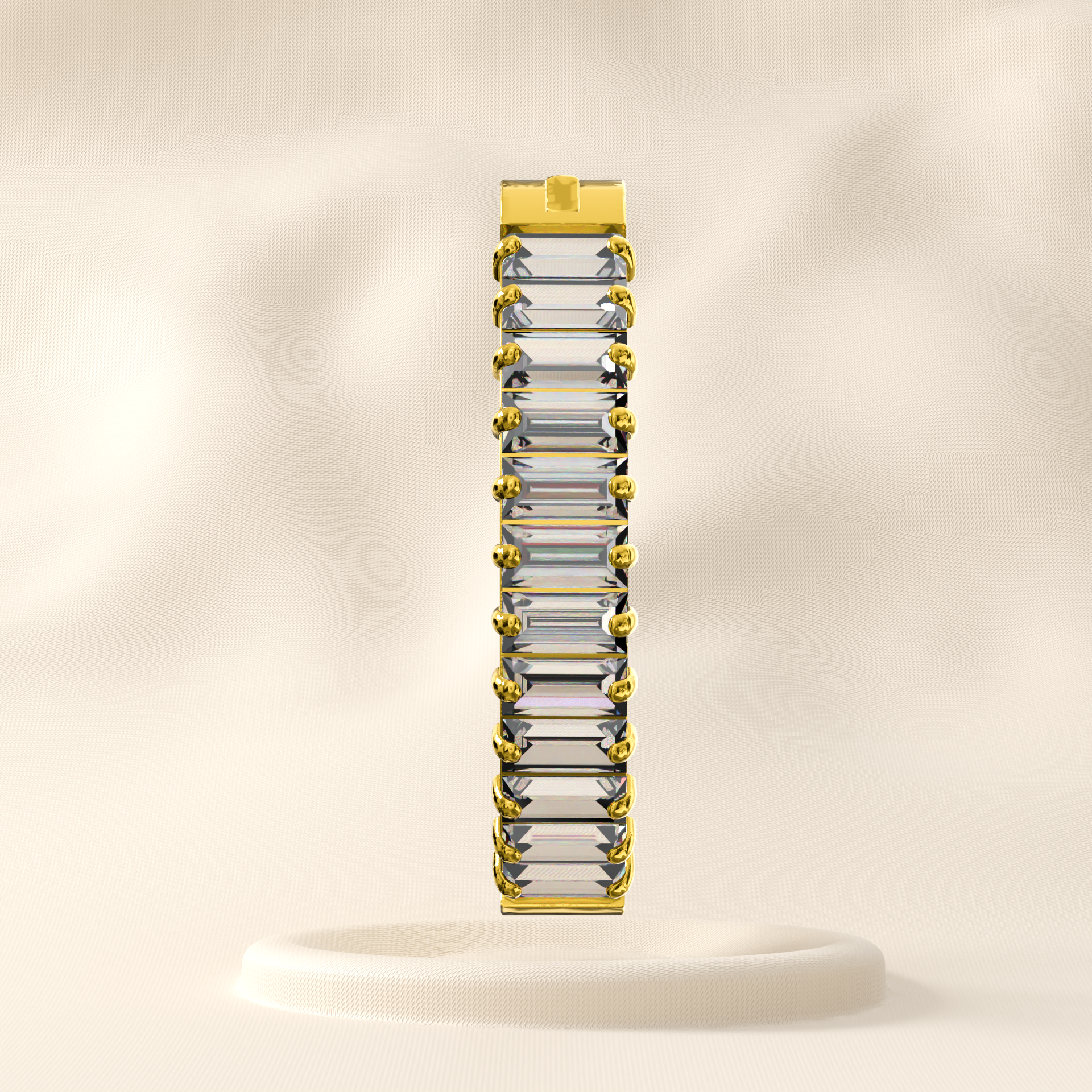 Elevate your body jewellery collection with the refined elegance of our G23 Titanium Vertical Baguette CZ Crystal Lined Reverse Curved Belly Ring. Crafted from implant-grade G23 titanium, this exquisite piece offers superior biocompatibility and lasting shine, making it perfect for sensitive skin and long-term wear.
