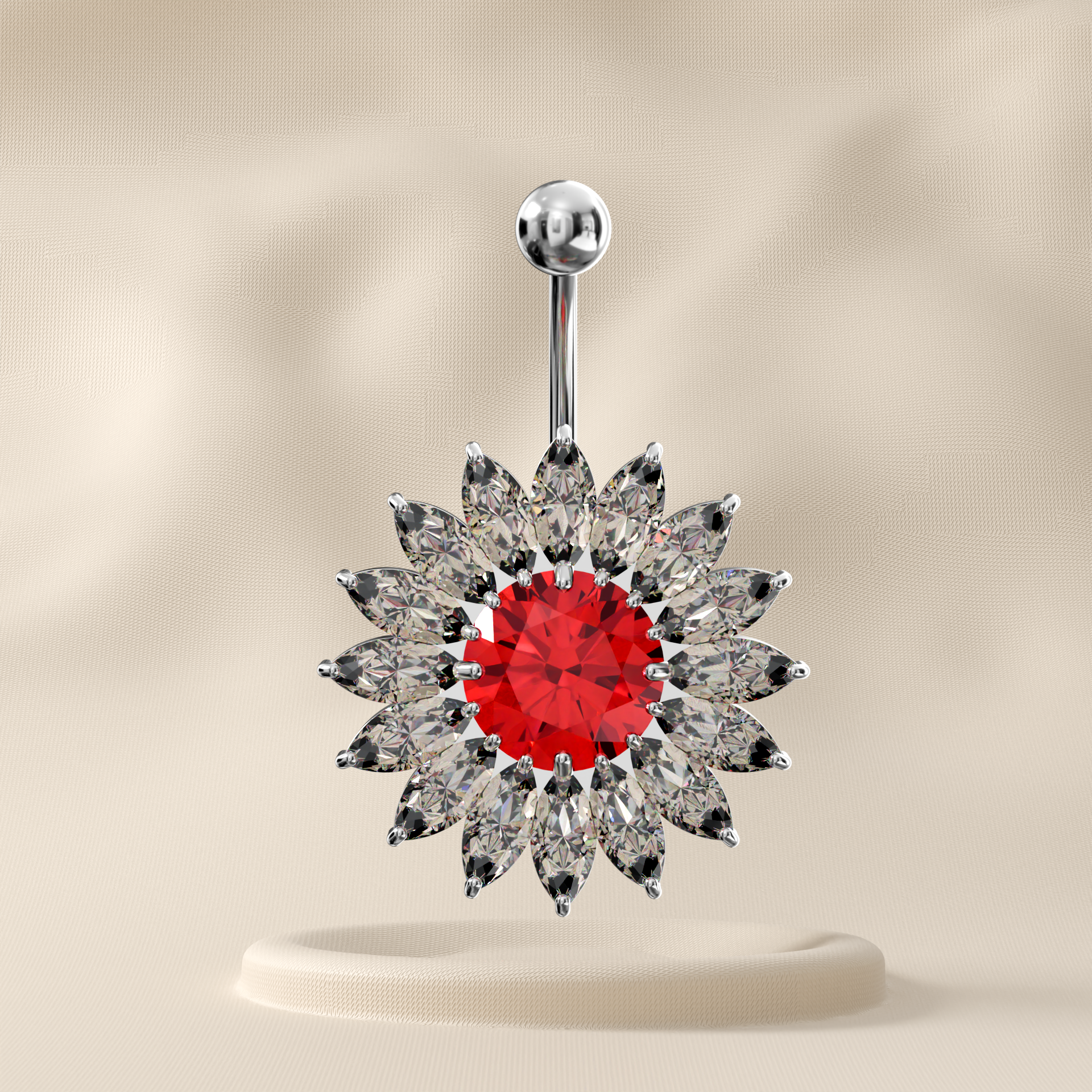 Embrace floral elegance with the Jewelled Sunflower 925 Sterling Silver Banana Bar Navel Ring. Beautifully crafted in polished silver, this stunning piece features a sparkling sunflower centrepiece, with radiant cubic zirconia petals that shimmer with every movement.